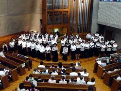 礼拝堂では、ミニコンサートが行われ、オルガンソロ、管弦楽の演奏をお楽しみいただきました。また、学科ごとの相談コーナーでは、学生生活やレッスンの様子など、色々な質問が出て、在学生の先輩達と話が弾みました。