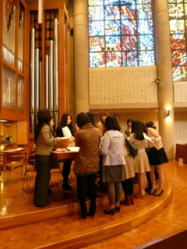 音楽科ピアノ専攻生は、4年生になると礼拝の奏楽を担当します。