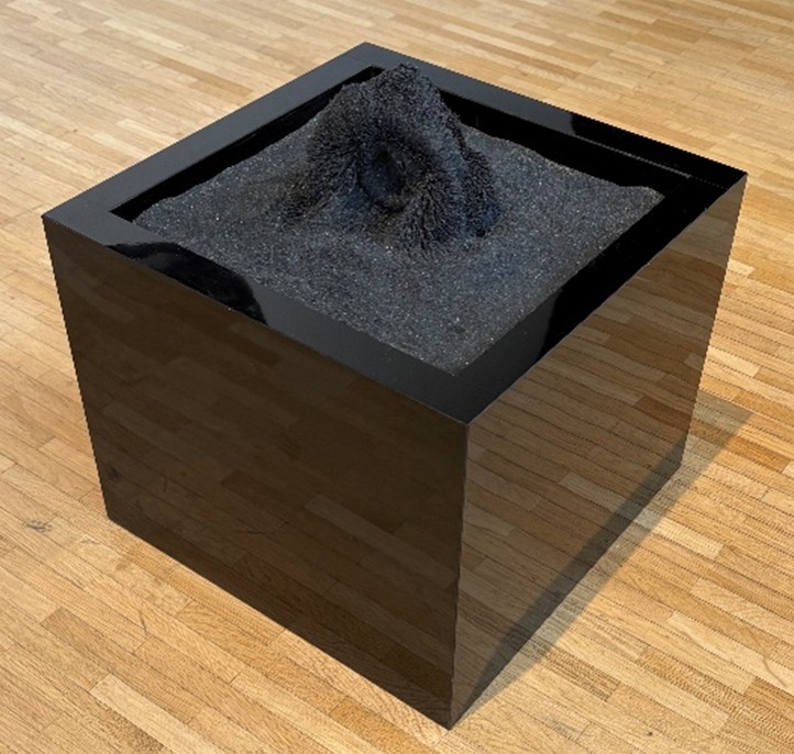 それらの1つに,「なんだこれ?」という作品がありました(写真)。近づいて見ようとすると,スタッフの方に「あまり近づきすぎないように注意してください」といわれました。なんでも,砂鉄が強力な磁石によって形づくられたもので,振動や風で崩れてしまう繊細な作品とのことでした。