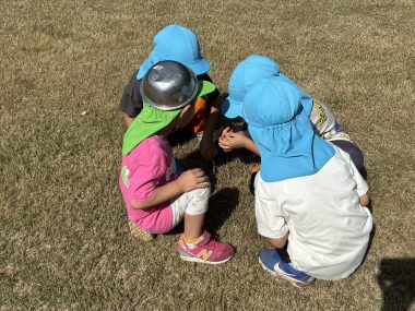 昨日の土砂降りが信じられないくらいの晴天・秋晴れになり、北園庭で運動会に向けて楽しく遊ぶ子どもたちの声が朝から響きました。運動会当日、3歳児の遊びの手伝いに入ってくれる5歳児の子どもたちが確認のためにやってきてくれて実 …