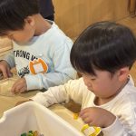 今日は一気に気温が下がり体を動かすことなくじっとしていると手が悴んでしまいそうになるような一日でした。それでも3歳児にじ組の子どもたちは早い時間から外に出て落ち葉拾いや落ちていた枝をペン代わりにして絵を描くなど楽しげに遊 …2025.11.17