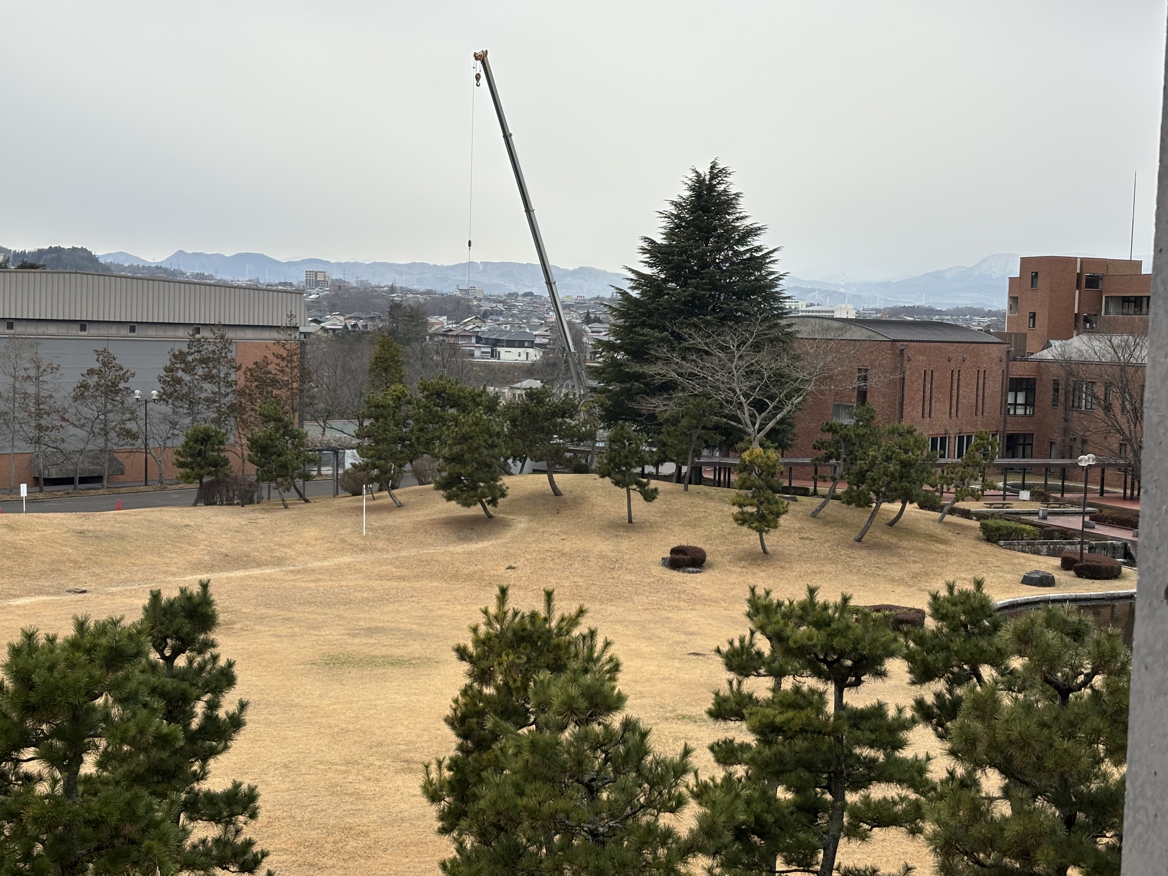 さて、2限目と3限目の間の学生たちの昼やすみ時間に授業に関することで講義館に出かけたのですが、4階の教室から芝の広場を見下ろすと中高の新校舎建設のための大型クレーンが忙しそうに動いているのが見えました。ここに新たな建物が完成すると景観と動線が変化することになりますが、人間(機械)の凄さを感じます。