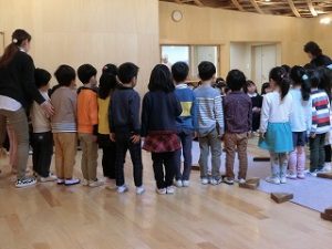 今日は本番を見ることの出来ないにじ組と、贈る言葉を話すそら組が出席してくれました。当日出席できないお父さん2名も出席されました。