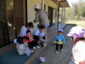 そら組もお集まりをして先生のお話をしっかり聞いていました。立って、座って、を交互に先生が言っていましたが、時々違う言い方をするので、油断をすると間違えてしまいます。