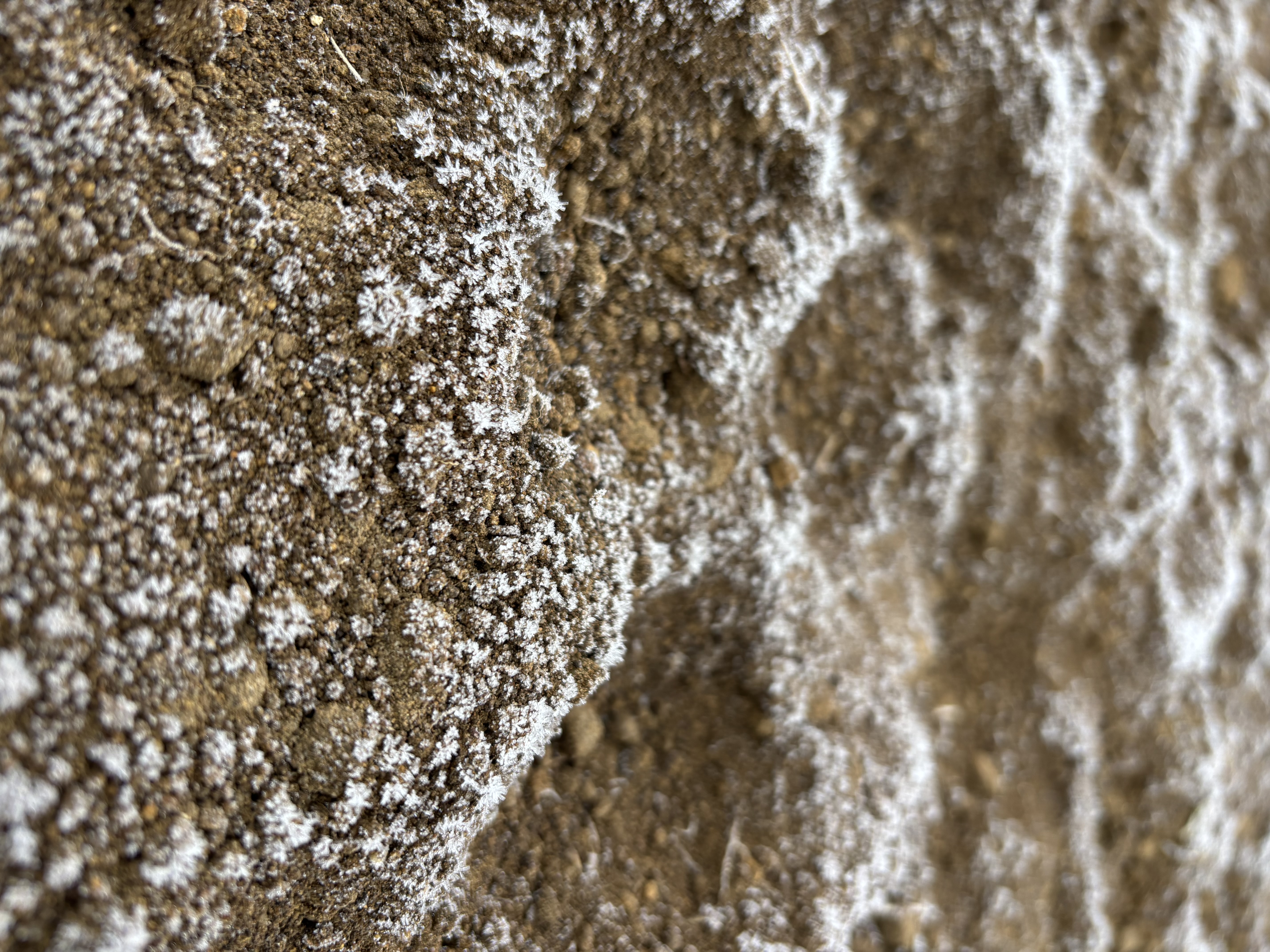クマの出没を監視するために設置しているトレイルカメラはほんの一瞬という僅かな動きにもしっかり反応し様々な生き物の動き記録してくれています。それだけではありません、カメラの記録から今朝3:57分の気温が氷点下4℃だったことがわかりました。どおりで、北園庭の畑の土と少しだけ残っている葉野菜に霜が降り真っ白になっていたことが納得できました。ほとんど見かけなくなったアリたちもそろそろ冬籠りとなり、次にその姿を見せてくれるのは来春暖かくなってからでしょうか?