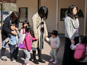 1号認定の子ども達は、青空の下で8時45分になると次々車で登園してきました。お母さんと離れることが分かった人達は今日泣いていました。2日目の朝は泣く人が変わっていました。お母さんたちがサッと離れてくださったのでお部屋に向かう人たちはスムーズでした。