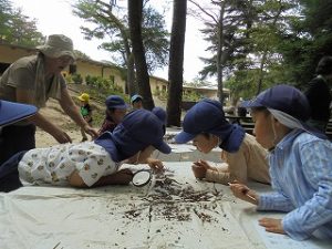 子ども達の興味は尽きません。最初から最後までたっぷり1時間の有意義な活動でした。子ども達がいなくなって片付けをしていたメンバーの方が「虫がたくさんいましたねぇ」と話していました。今回のプログラムに応募したのは本園だけだったそうです。本来は小学生対象だったらしいのですが「またやりたい!」とい子ども達に、「シャーレ」を「買わなくちゃ」と思った先生達でした。