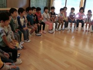 10時を過ぎたところだったので、ちょうどそら組では朝の集まりをしていました。お当番さんも前に来て紹介されていました。