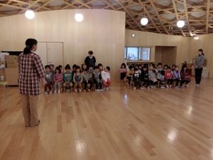 ひかり組はみんなの広場で修了式の練習が始まりました。子育て支援室ではどんぐりくらぶの2歳児の最後に日でした。お母様を対象にした、給食の試食と栄養士のミニ食育講座でした。-給食はとても美味しかったそうです。-