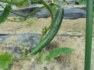 畑の野菜が大きくなっています。昨日大きくなったキューりを2本りんご組が収穫してくれました。今日もだいぶ大きくなったキューリがありました。新鮮なキューリですね。