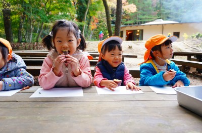 森のこども園では、園の畑で取れたサツマイモで「やきいも」をしました。