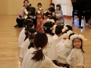 子どもたち一人ひとりの頑張りに、保護者の皆様の拍手がやまず、子ども達も戸惑ってにっこりしていました。写真を撮るために残ったひかり組に改めて大きな拍手です。