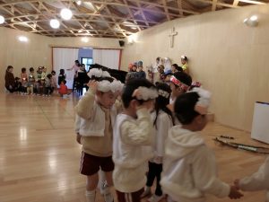 9時過ぎから続々と2グループのメンバーが集まり始め、子ども達を待つ保護者の皆様は、9:30から今日の入場の「もろびとこぞりて」とクリスマス礼拝で歌う「かみのみこは」の練習をしました。