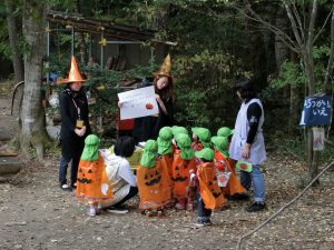 「おもしろかった~」「おいしかった~」森で繰り広げられたハロウィンパーティーは終わりました。昨年の開催できなかった夏まつりの反省をもとに、子ども達だけでできるお祭りを計画しました。ですが、先生達ではやはり手が足りずに、ボランティアとして保護者の皆様のお力を借りで、準備から当日のお手伝いまでやっていただきました。
