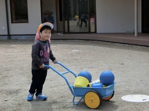 未満児の給食は一足早く始まります。ぶどう組は先日まで盛大に床にこぼしていて、担当した先生達の悲鳴が聞こえそうでした。ぶどう組は手づかみ食べができるようになった人や、フォークやスプーンを使い始めたばかりの人達もいて、口にきちんと入っていくまでが大変です。自分で出来ることや、自分でやろうとする気持ちがとっても大事です。りんご組は食べるのが上手になりましたね。