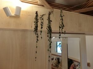 登園の時から冷たい雨が降り、子ども達がカッパを着たり、傘をさして登園してきました。野外炊飯場の窪地に咲いている「カキドオシ」という花はお茶として飲めるそうです。ひかり組に干されていました。