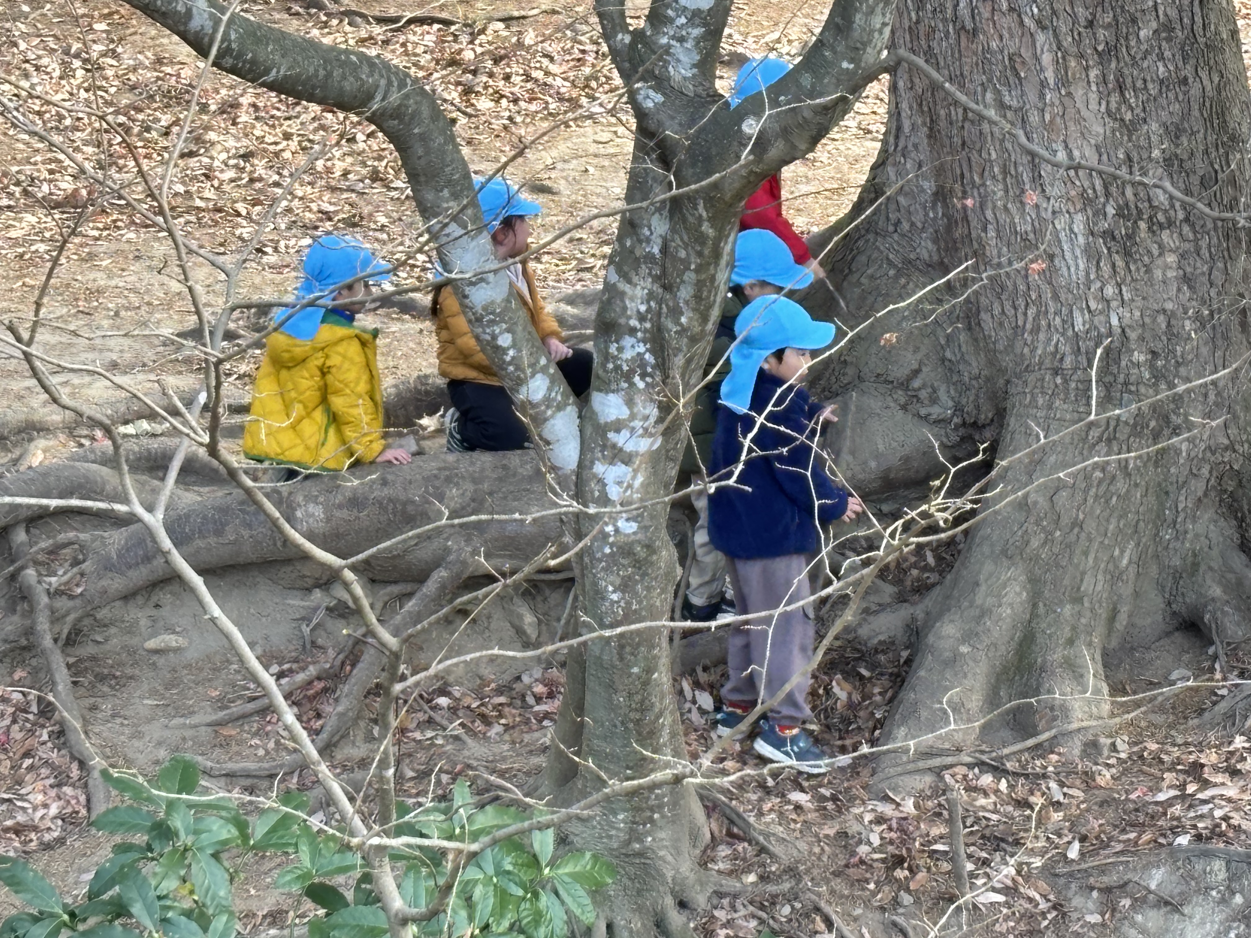 さて、昨日祝会を終えた4・5歳児は昨日の余韻に浸っているかと思いきや、クリスマスの準備を始める前と変わることなく平常運転といった様子で過ごしていて、4歳児そら組の子どもたちは森に散歩に出掛けていきました。また、昼食後には野外炊飯場の近くの森で何やら楽しげに遊んでいました。朝は日に日に冷え込むようになりましたが、寒さを凌ぐためにやってきた白鳥たちが鳴きながら園の上を飛んで行き、畑のキャベツや白菜も霜に負けず元気に育っています。児童クラブではトチもち作りに向けて硬い皮を剥きアクを抜く準備が始まっていました。