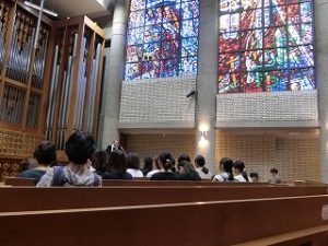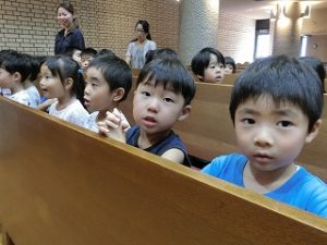 礼拝堂中にパイプオルガンの荘厳な音楽が流れ、子ども達は入場、奏楽、讃美歌、といつもとは違う雰囲気を身体中で味わいました。