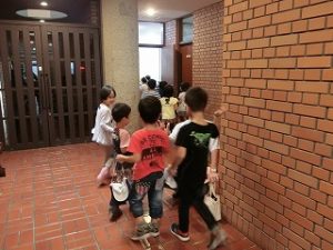 小礼拝堂では大久保先生が待っていてくださいました。今日のお話は「タラントンのたとえ話」でした。子ども達は大久保先生が楽しく話してくださったので、結構内容が印象に残ったようでした。