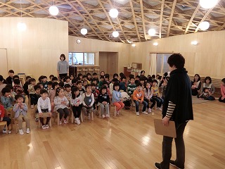 ぶどう組も思ったより落ち着いていたので参加、もも組だけお部屋にいました。礼拝から始まり、奏楽、讃美歌、聖書の言葉、お祈りの順番で行いました。
