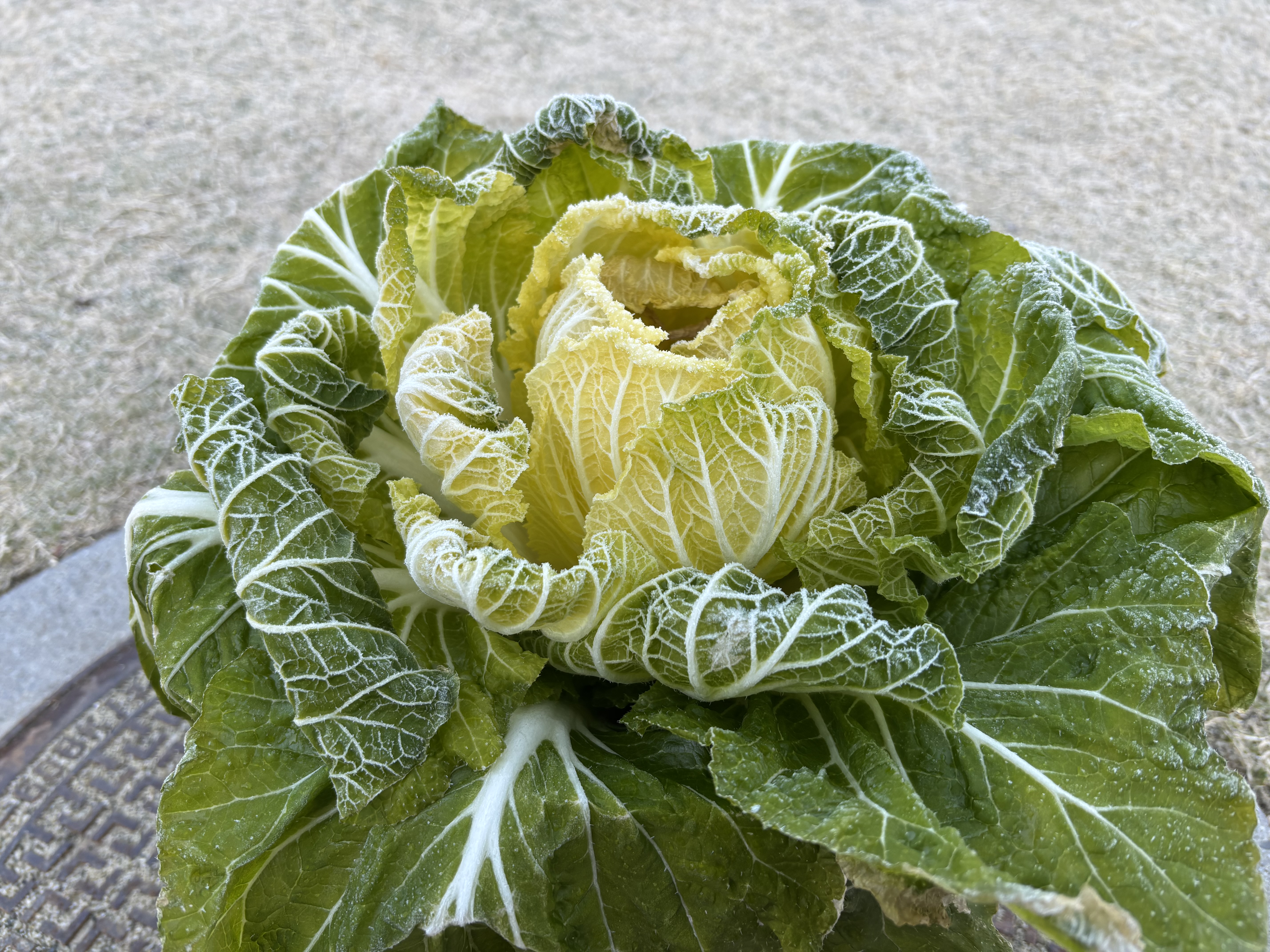 「あけましておめでとうございます」「ことしもよろしくおねがいします」との挨拶があちこちで交わされて始まった朝、今日を楽しみにしてくれていた子どもたちが元気に登園してくれました。年末年始数日間お休みだったこともあり、園舎内がすっかり冷え切ってしまい、暖かくなるまでしばらく時間がかかりました。しかし、北園庭では辛うじて残った(残してもらった)バケツ育ちの白菜とブロッコリーなどの冬野菜が霜に耐え枯れることなく育ってくれていました。子どもたちはそんな寒さの中でもしばらくぶりの登園が嬉しくて仕方がないようで、野菜たちに負けることなく砂遊びや縄跳びに興じていました。