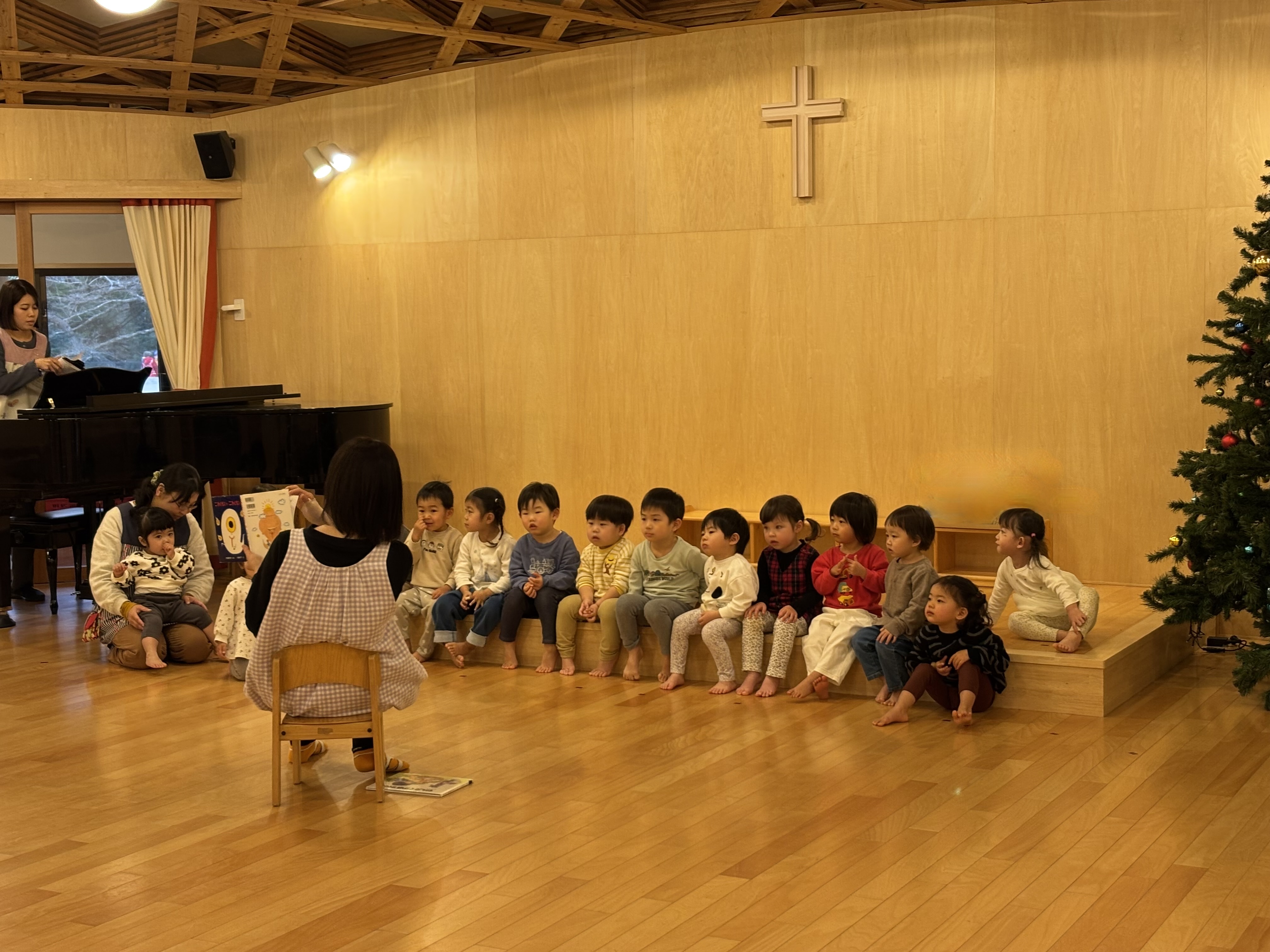 朝は3〜5歳児、午睡後には0〜2歳児が新年初めての礼拝を守りました。この子どもたちも3ヶ月後には進級することになります。4月から12月まであっという間だったと感じたのですから進級までは本当にあっという間でしょう。思う存分、今を楽しんで進級してくれることを願うものです。