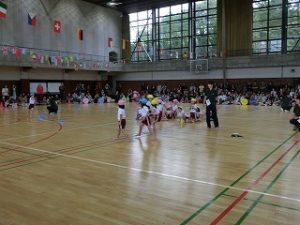 本日は大学体育館で予定通り運動会を行うことができました。台風の前兆はまだなく、皆様が帰宅されるまで雨も降らなかったのでホッと致しました。