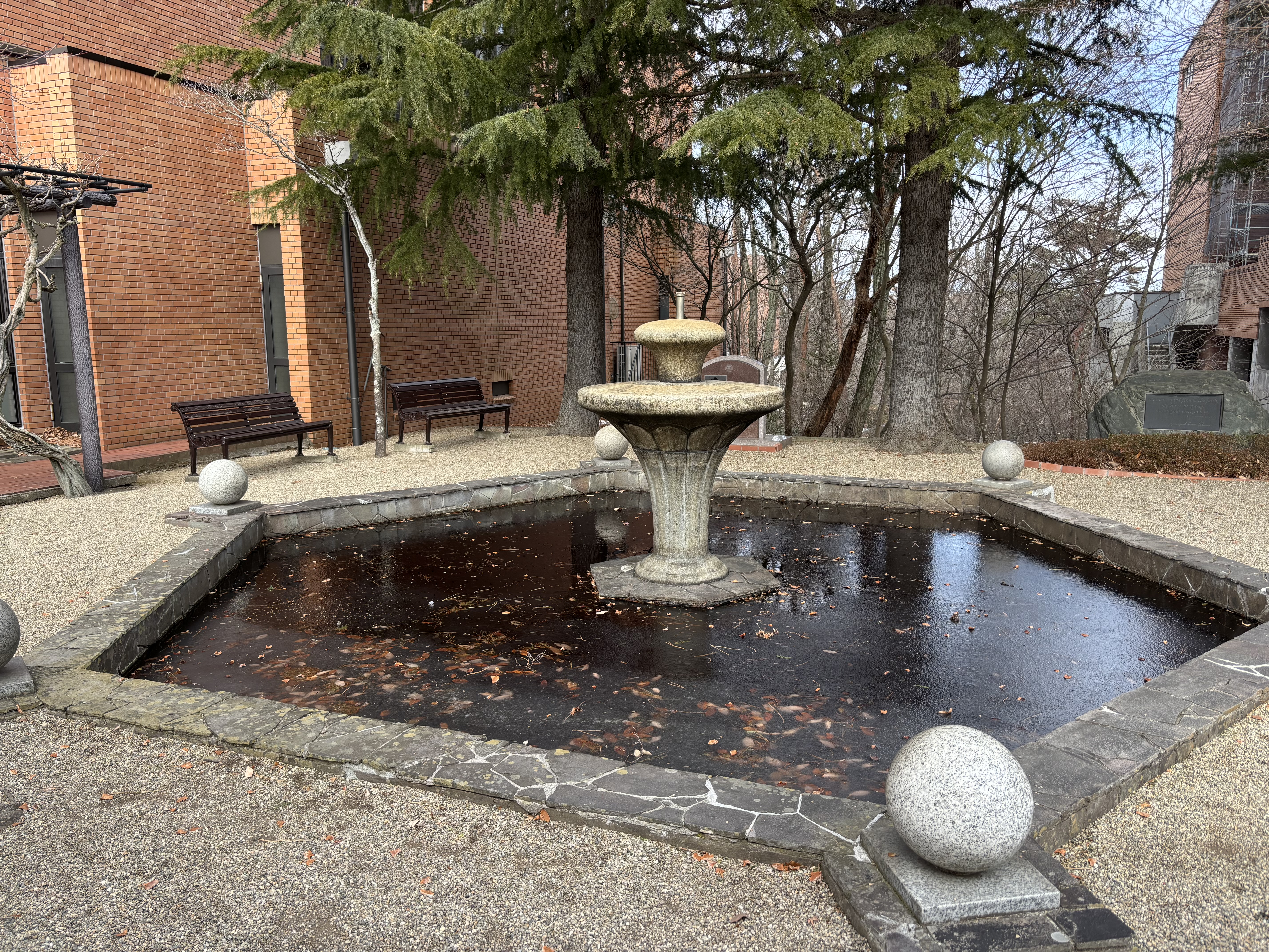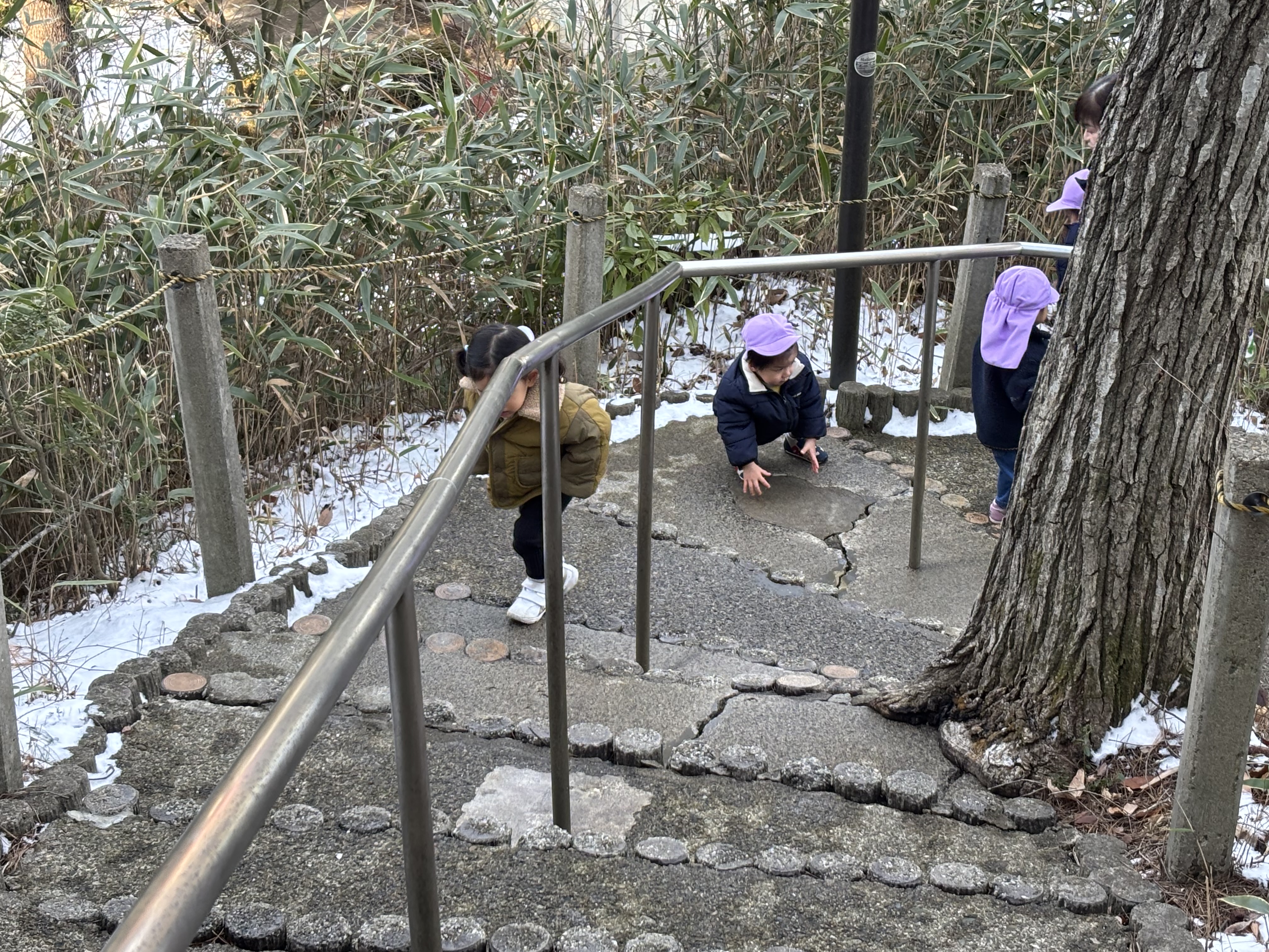 今日は少し寒さが緩んだとはいえ、帽子の像と並び宮城学院のシンボルという建学の泉の六角形の池と噴水とピアノ池はこのところの寒さで氷が張り、100段階段にも雪が残っていました。そんな寒さの中でも0歳児から5歳児が礼拝堂まで足を運びコンサートを聴かせてもらうことができ本当によかったと思います。今日のために練習や準備をしてくれた弦楽班の皆さんに感謝します。