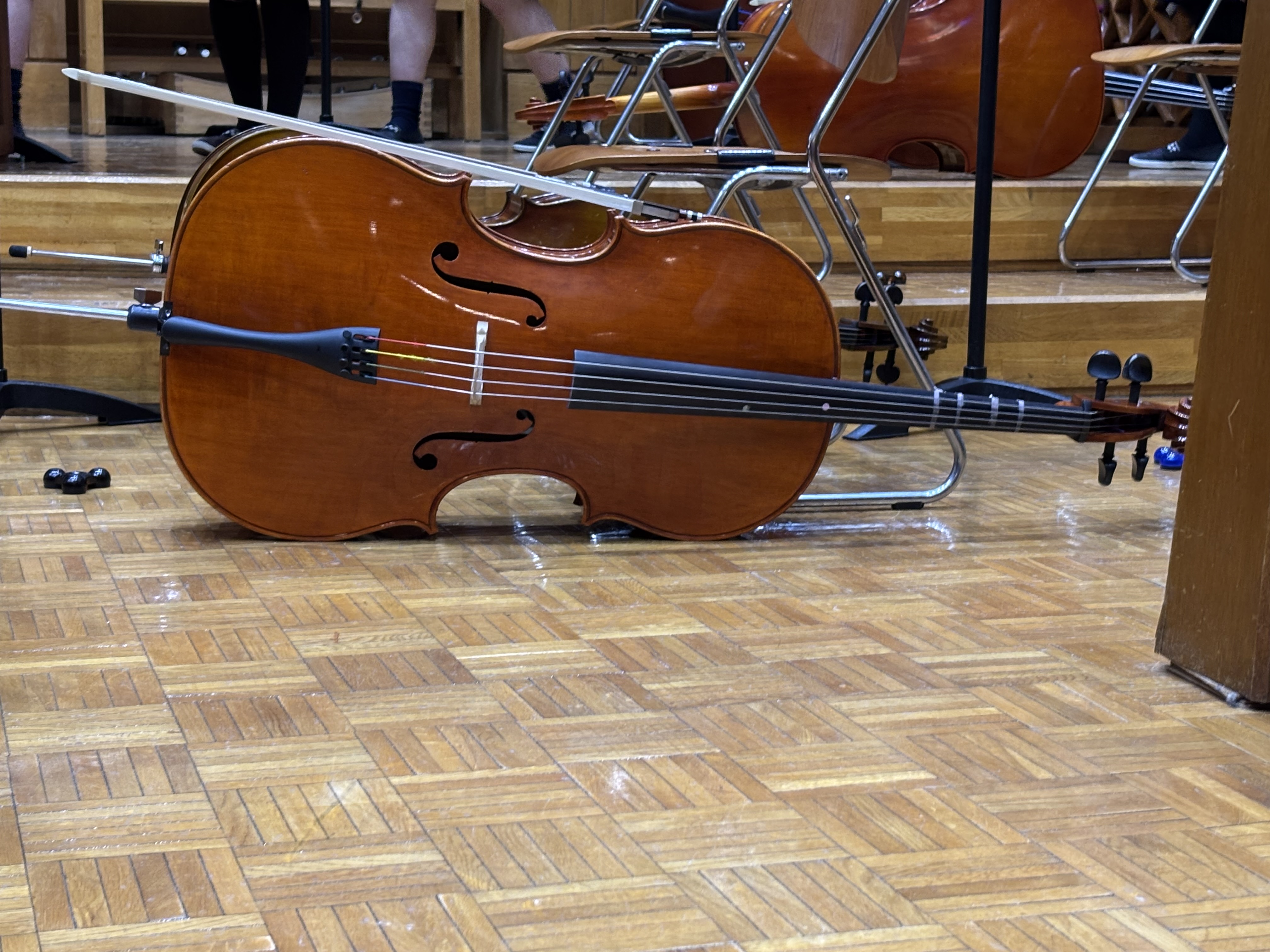 今週に入りインフルエンザや発熱でお休みや早退する子どもたちが急に増えてきています。昨日の3・4・5歳児の合同礼拝は感染拡大に繋がることがないよう各クラスで守ってもらいましたが、1号認定の子どもたちの中には感染予防のために家庭保育にご協力くださっているご家庭もあり登園する子どもたちが少なく寂しく思っています。そんな状況の中、今日は中高の弦楽班による音楽会が予定されていいました。園の子どもたちはもちろん、学生たちに迷惑がかかっては大変ということもあり開催すべきか中止にすべきか判断に迷い中高の先生方に相談しました。すると、「体調を崩しお休みしている学生もいてフルメンバーではありませんがぜひ聴いてください」とのお返事をいただくことができ予定通り礼拝堂で音楽会を開催してもらい、子どもたちの好きな曲(知っている)の演奏や楽器紹介など素敵な時間を過ごすことができました。5歳児ひかり組は最近カスタネットや鈴など楽器を使いクラスで合奏をするなどしていたこともあり担任のA先生が「今日お休みした子どもたちに聴かせてあげたかった」ととても残念がっていました。