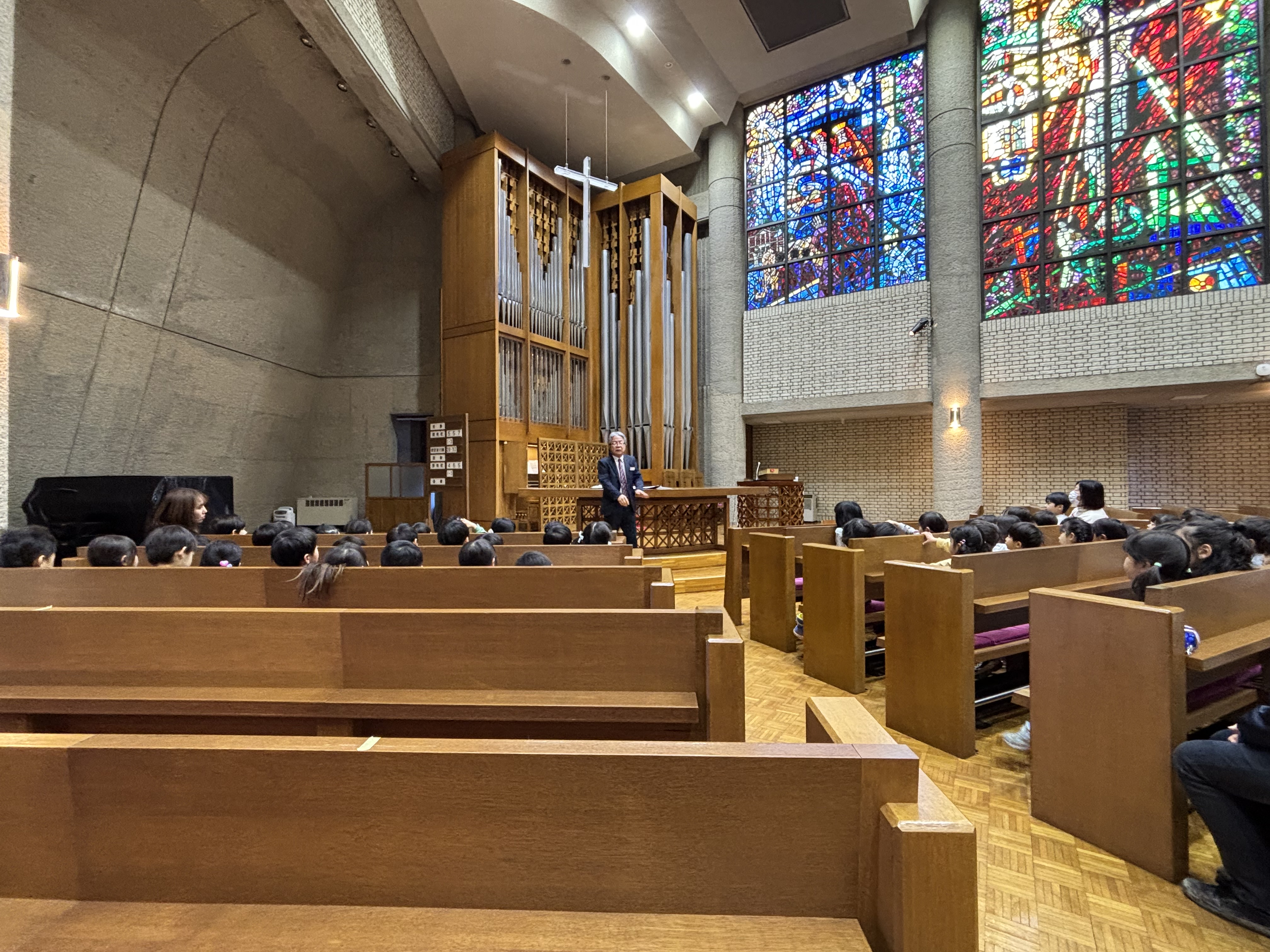4週間しかない2月の1週間があっという間に過ぎてしまいました。今日は3・4・5歳児が礼拝堂で大久保先生と合同礼拝を守りました。ひかり組の子どもたちと一緒に100段階段を上り、近道のために中高の建物を通らせてもらいましたが、こんなこともあと何回できるでしょう?また、礼拝では司会の先生が読む聖書の話をよく聞き、ストーリーや登場人物等をしっかり覚えていることに大久保先生が驚くほどでしたが、こうしてひかり組の子どもたちと一緒に礼拝を守ることも残り数回となり、改めて年度末が近づいていることを実感させられました。