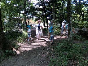 最初、外に出たお母様が「ウワー暑い!」と言っておられましたが「森の中は涼しいのねぇ」とホッとされていました。そして、子ども達が森の情報に詳しいことに驚かれていました。