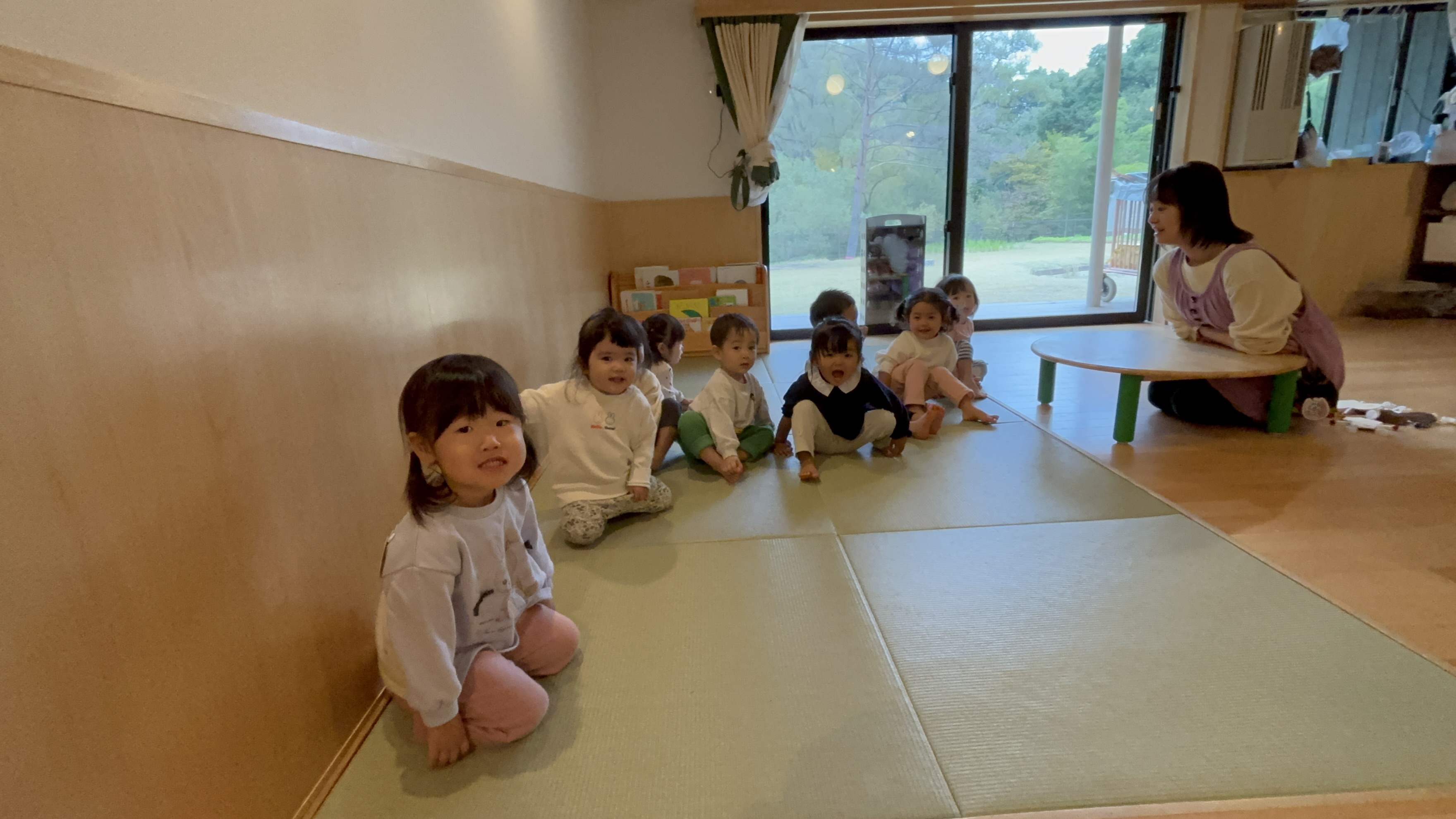 保育室に戻るとN先生が楽しげなことをしていたので授業で学生たちに子どもたちと先生との関わり、普段の保育の様子の一角を紹介させてもらおう思いしばらく保育室にお邪魔させてもらいました。N先生の子どもたちを夢中にさせる引きつけ方(間)とカタカタ音を立てて踊る(動く)動物たちが可愛らしく自然と笑みが浮かびました。