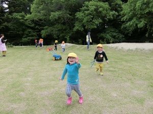 北園庭の東斜面では、虫を捜している人、フープとロープを使って遊んでいる人もいました。