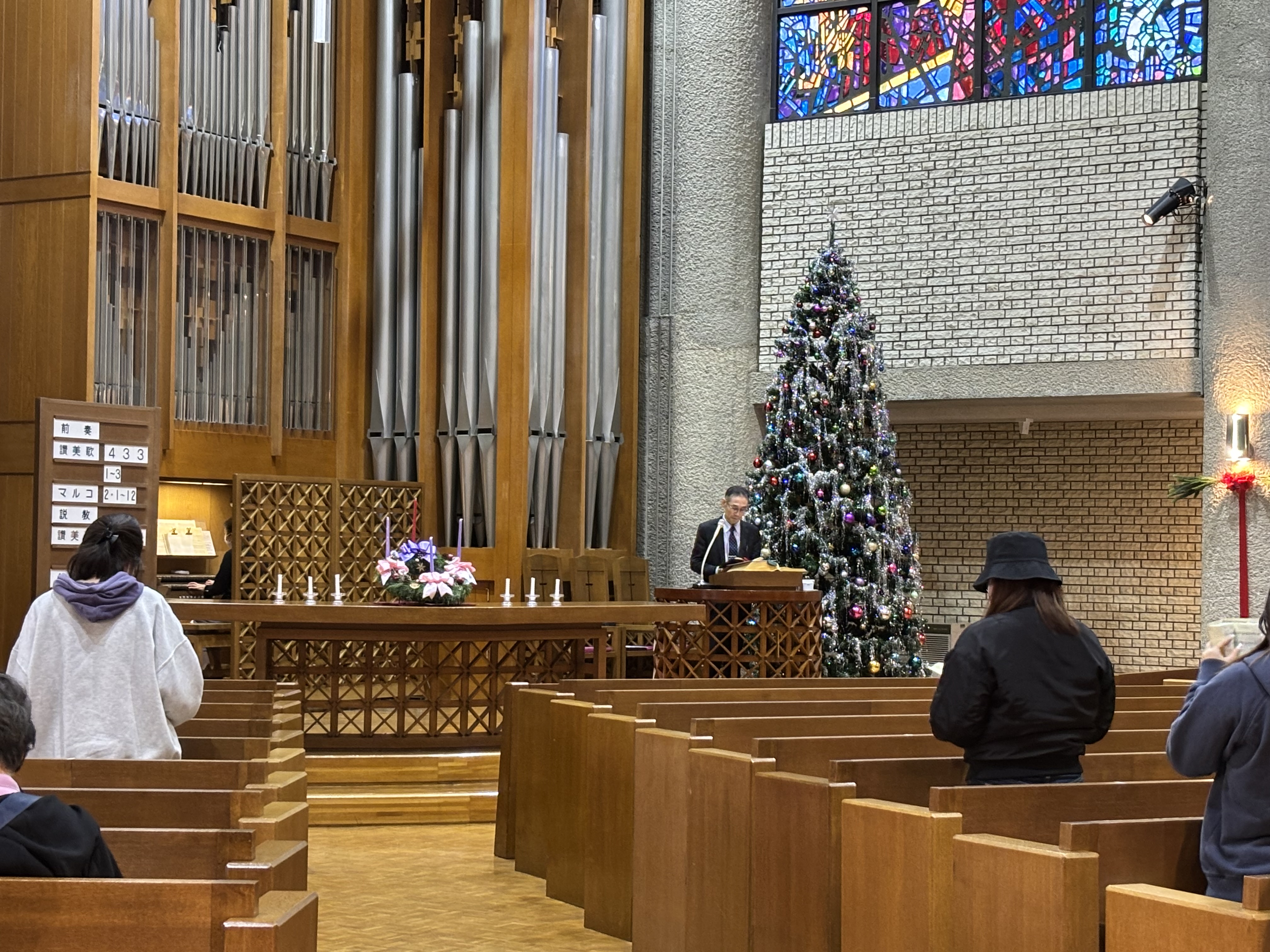 お昼に大学礼拝に出席してきましたが、クリスマスツリーやクランツ、キャンドルが飾られクリスマスの準備が整った礼拝堂での礼拝はいつも以上に特別感が感じられました。
