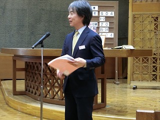 子ども達が退場した後に、大久保先生は、保護者へメッセージをお伝えして下さいました。平凡な人間であったソロモン王が、神様に何でも与えようと言われ智恵をいただいた話でした。