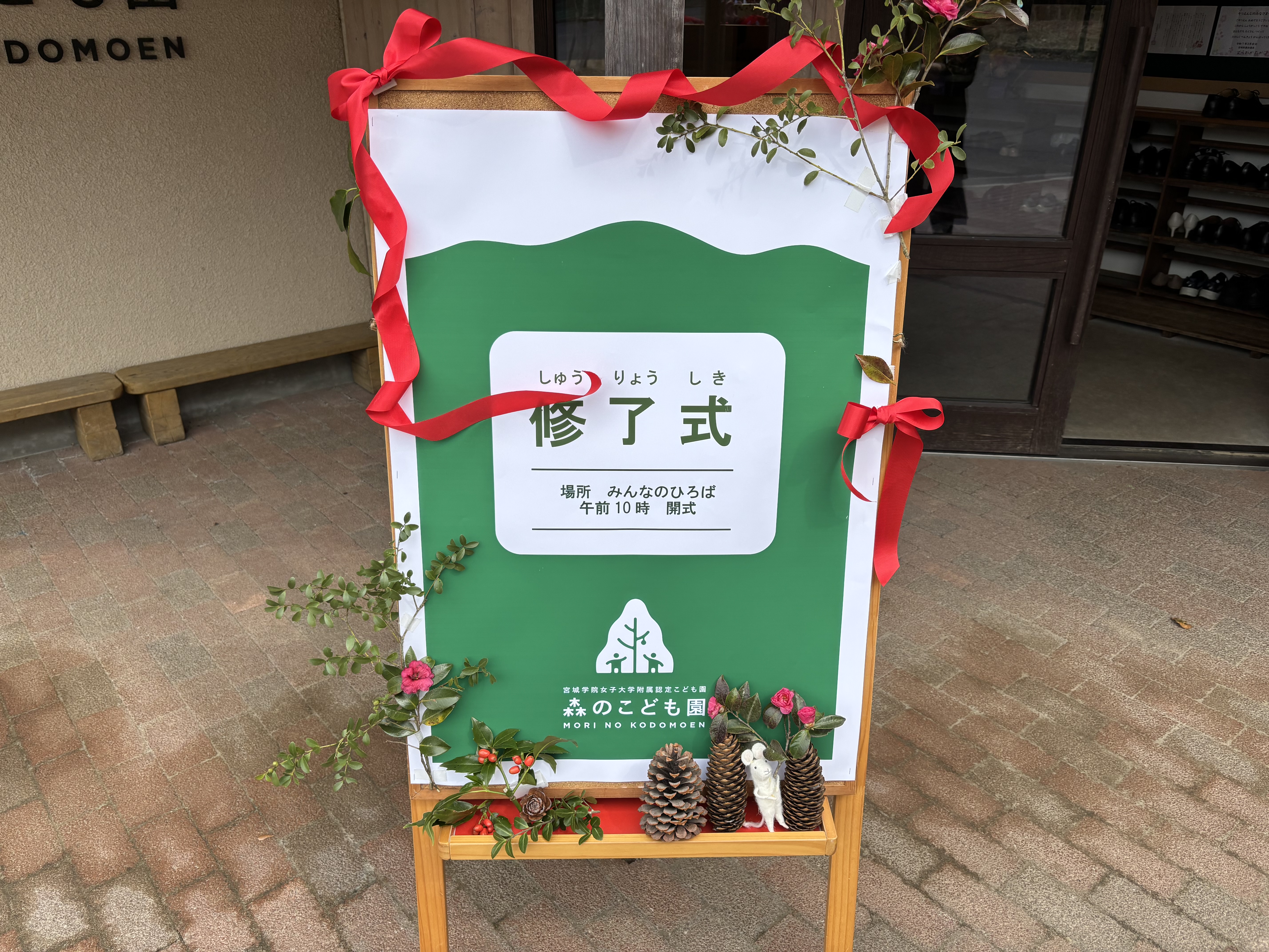 昨年度の修了式同様、今年度もピアノとヴァイオリンとチェロの心地よい生演奏が修了式に花を添えてくださいました。保護者の皆様をお迎えする前にいらしてくださりひろばでリハーサルが行われましたが、そこから響く素敵な音色に修了式当日を迎えたことを実感させられました。