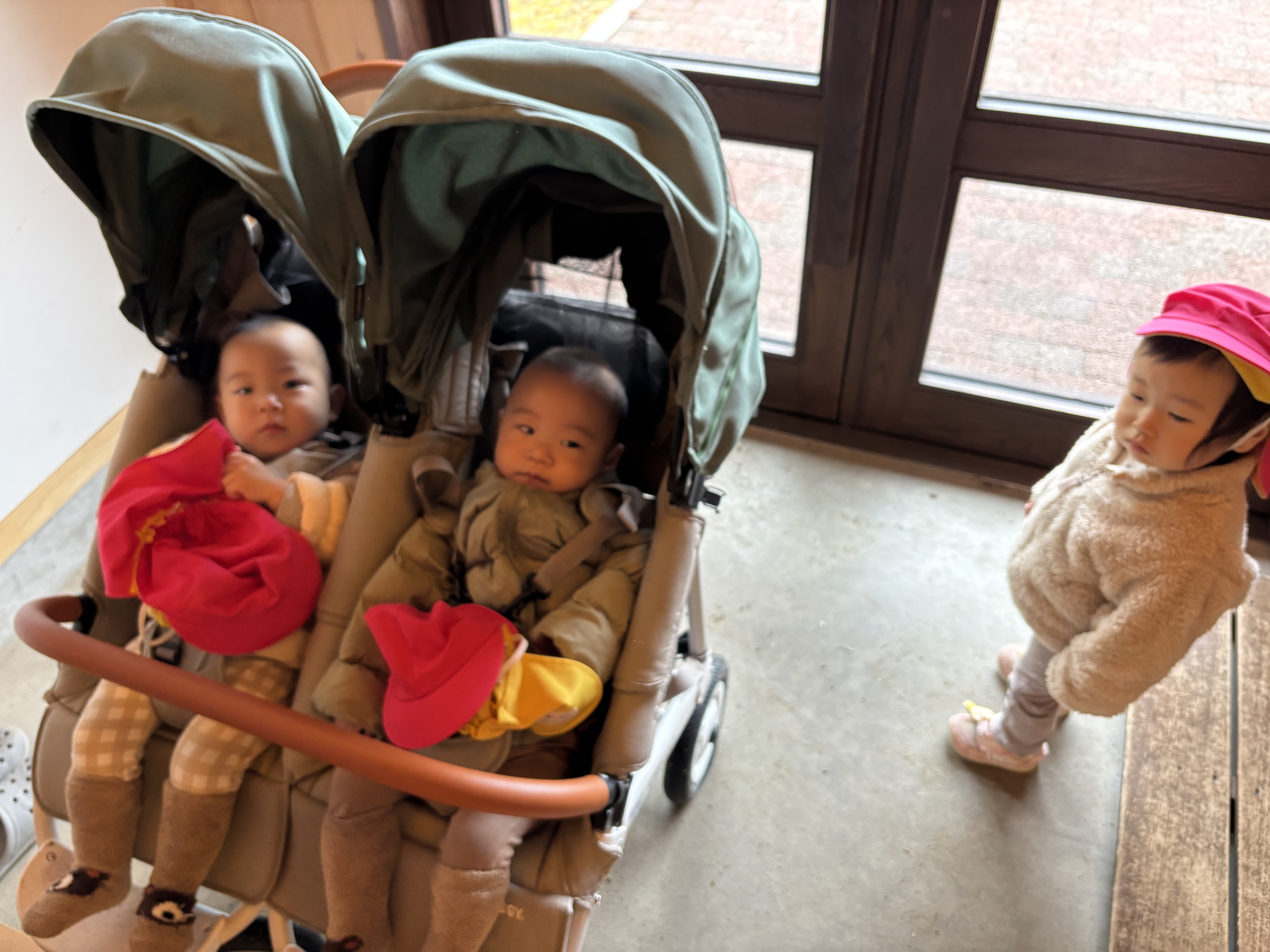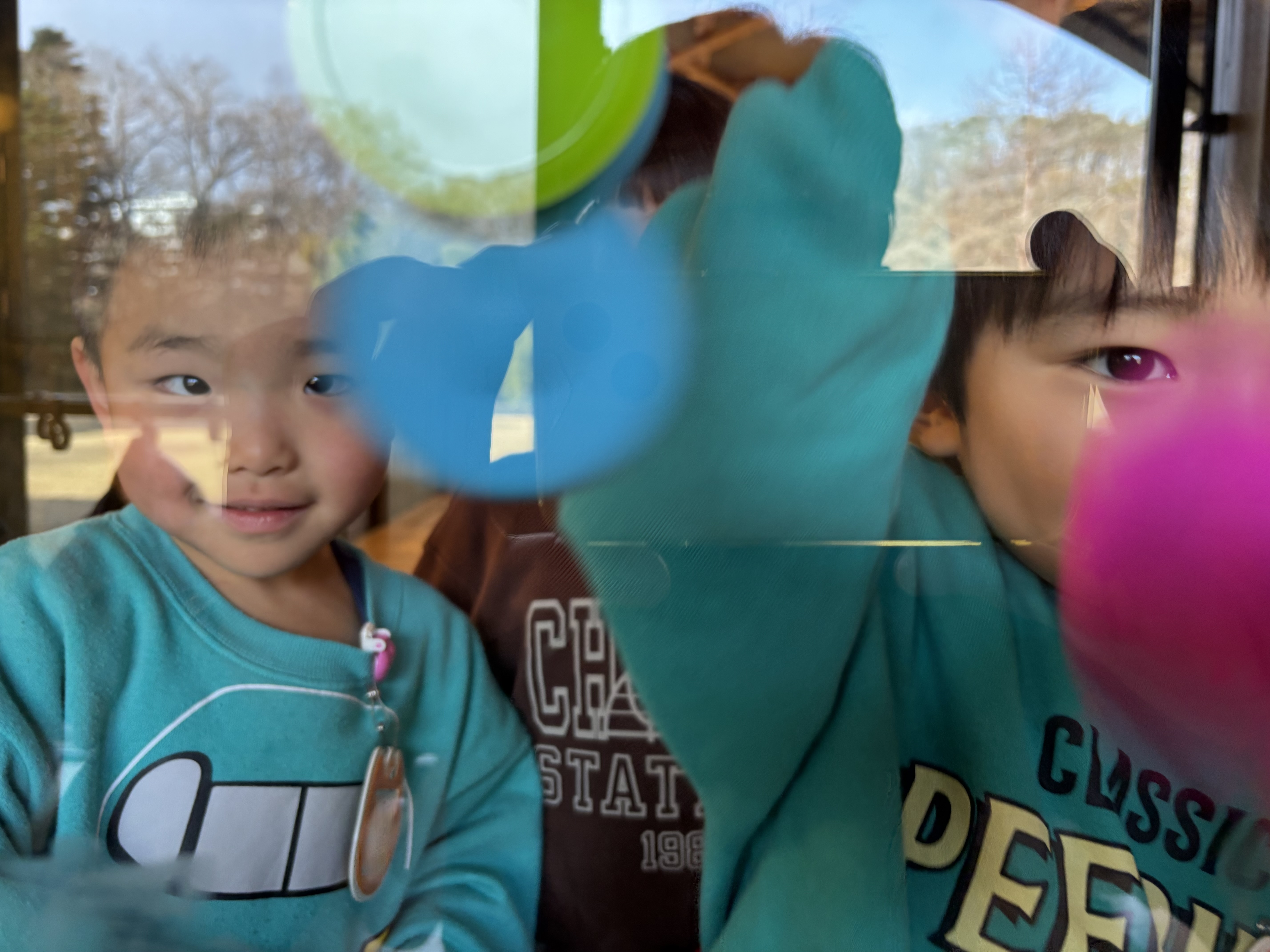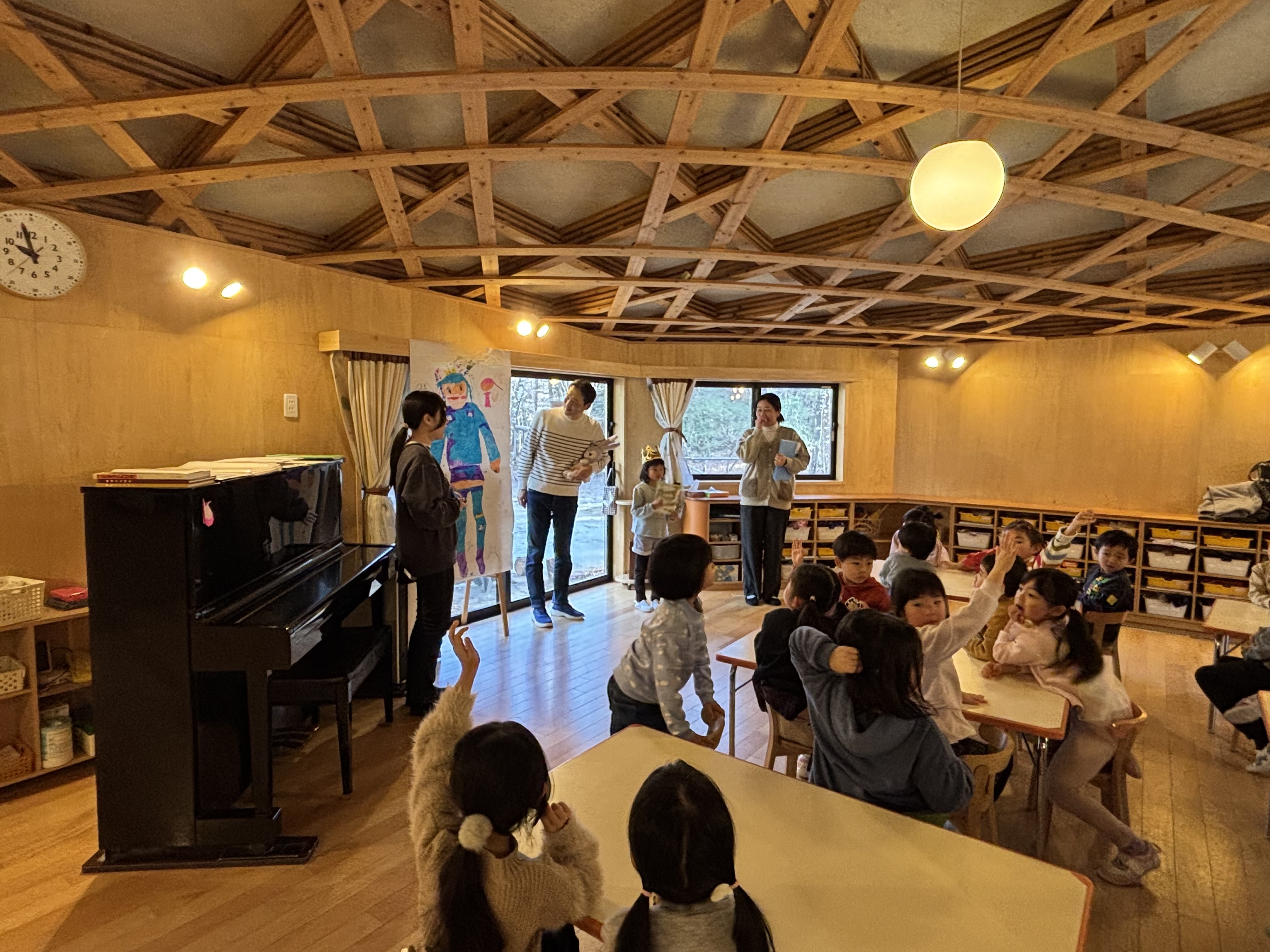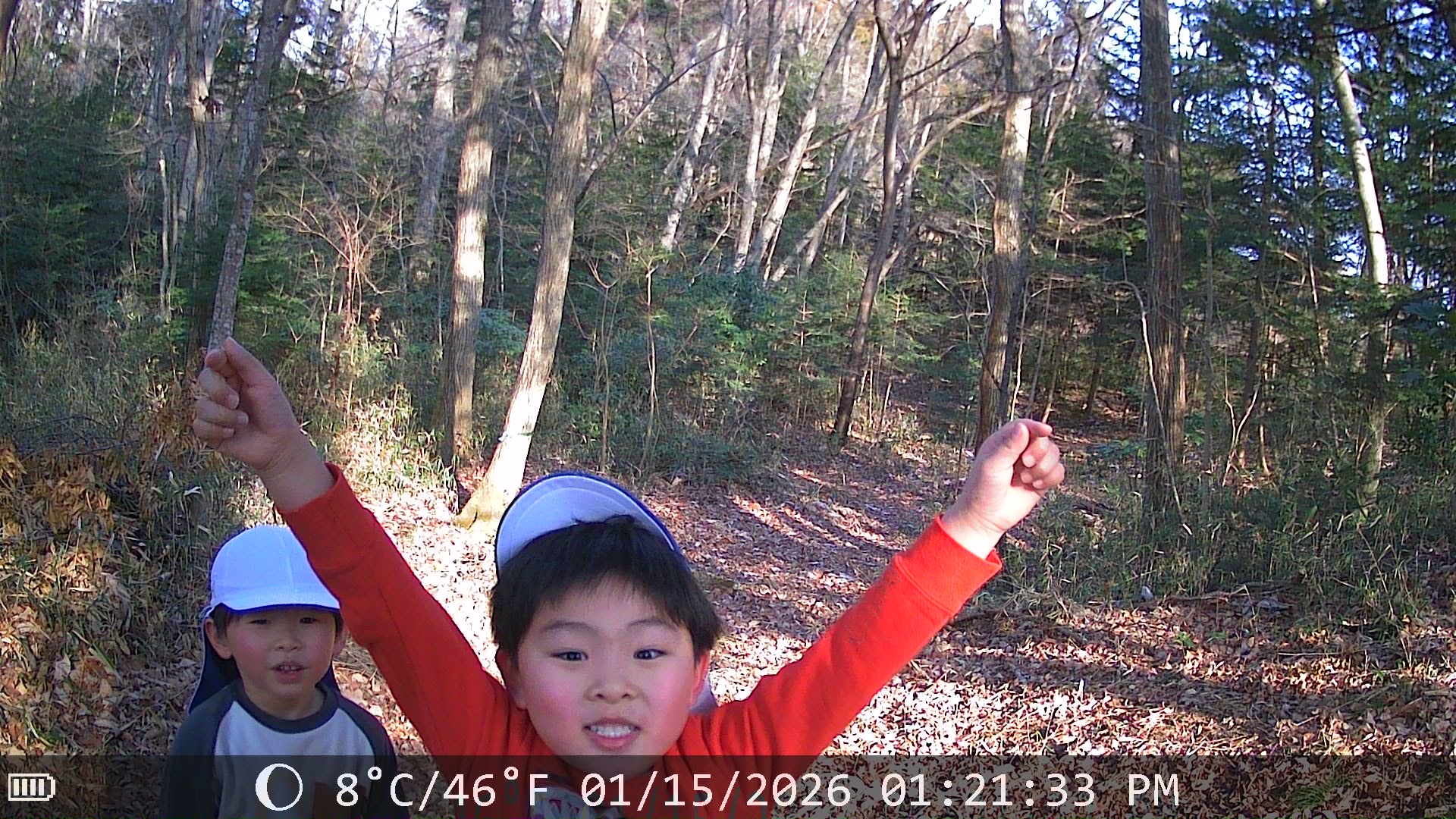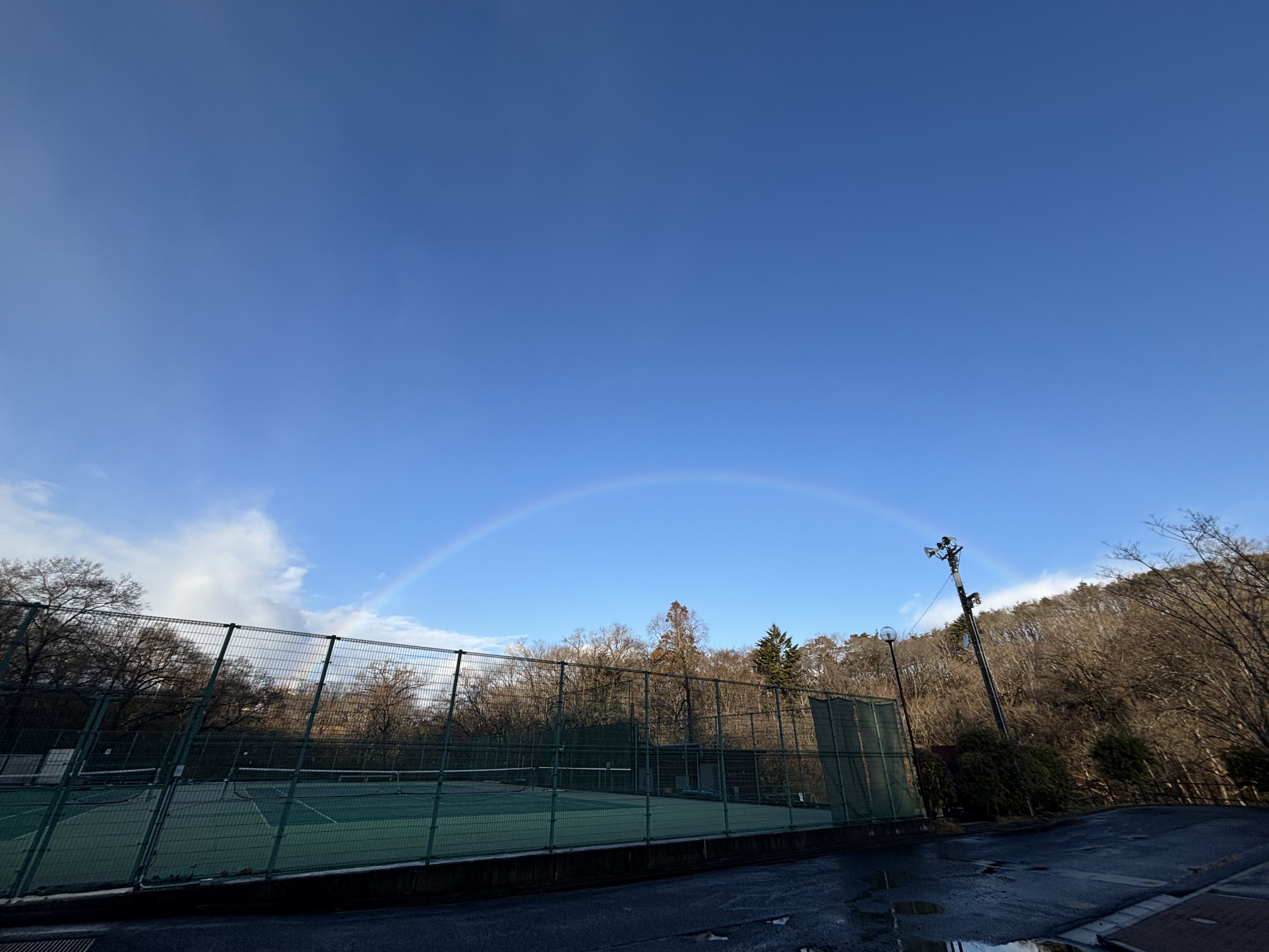今朝、多くの子どもたちが 西の空にかかった大きな虹を見つけて(見て)「虹がいる」と表現しながら大喜びして登園してきました。子どもたちは虹に限らず「朝になっても見える月」、「色々な形に見える白い雲」、「どこに向かっているのかキラキラ光りながら飛んでいく飛行機」などに気づき「どうして朝なのにお月様がでてるの?」「あの雲、◯◯に見える」「あの飛行機どこにいくのかなあ?」と呟くように質問してくることがあります。そんな様子を見ている大人以上に空を見上げていることが伝わってます。しかし、子どもたちが興奮しながら登園するほどの大きな虹も不安定な天気の影響で、陽が翳り灰色の雲が空を覆うと瞬く間に見えなくなってしまい、1歳児ぶどう組の子どもたちが北門まで出かけて程なく小雨が降り出し、そら組の子どもたちを追いかけるように頑張って準備を終えた0歳児もも組の子どもたちが外に出たと思ったらすぐに戻ってくることになってしまいました。 一方、3歳児にじ組、4歳児そら組、5歳児ひかり組では、それぞれ誕生会が行われ、いらしてくださったお父さんお母さんと一緒に楽しく過ごす姿が見られました。  クマ騒動以来、毎朝5台のトレイルカメラのチェックが日課になっていますが、今朝、その一台にひかり組のG君とK君がカメラ目線で楽しそうにポーズをする映像が残っていて朝からほっこりさせてもらいました。明日、明後日は大学共通テストが行われます。山手線や京浜東北線が停止するようなトラブルが起きることなく、カメラに写った二人のような笑顔が虹のように掛かることを目指して頑張って欲しいと思います。