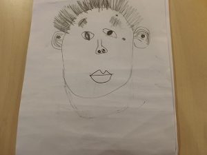 夕方になって「園長先生、午前中、描いていた絵です!」と先生が職員室に絵を持ってきてくれました。いつもは使わない鉛筆で友達の顔を良く見て描いた友達の顔です。絵が描けないと形にならなかった子の絵もありました。