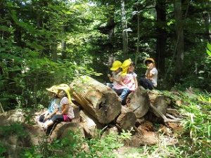 にじ組は森のあちこちに散らばって好きな遊びをしていました。大きいクラスの遊んでいる様子を良く見て真似っこしているのかな?スタンプ遊びをしなかったそら組も虫探しをしたり好きな遊びをしていました。