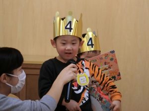 にじ組は6人のお誕生者です。4歳の冠を貰って終始ニコニコです。