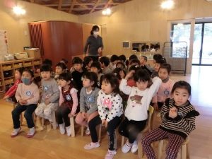 にじ組やひかり組でもお集まりをして先生のお話が始まっていました。