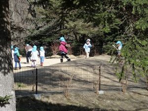 暖かいから子ども達の動きものんびりです。森の中で何か見つけたり、先生に手伝ってもらい木登りの練習もしていました