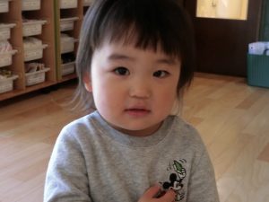 りんご組に行ったら、カメラの側に寄ってきました。「いい顔してね。」と呼びかけた顔はいかがですか?豊かな表情のりんご組さんは、私に一生懸命遊びの説明をしていました。