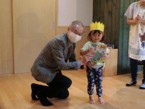 お祝いされるお友達は朝からドキドキ・そわそわ…。お友達に「おめでとう」と声をかけてもらう喜び、かんむりやカードを貰えるうれしさもあるけれど、マイクを向けられるインタビューで何って言おうかな…というドキドキもあるのです。