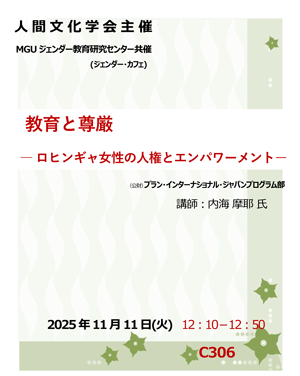 本イベントでは、紛争や差別の影響を受けるロヒンギャ女性にとって、教育が尊厳と人権を守る重要な力となっていることについて、プラン・インターナショナル・ジャパンの内海摩耶氏にお話しいただきました。現地での支援活動を踏まえ、女性のエンパワーメントがどのように実践されてきたのか、その具体的な取り組みを知る貴重な機会となりました。
